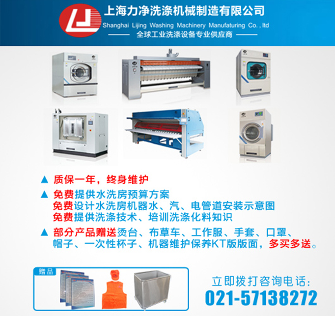 你們是我們成長路上堅(jiān)強(qiáng)的后盾,我們真誠的感謝你們的支持,感謝一路有你們的信任和陪伴,才有了上海力凈今天的豐碩成果,感謝你們,感謝有你,在此,上海力凈鄭重承諾:凡購買上海力凈產(chǎn)品,質(zhì)保一年,終身維護(hù),免費(fèi)提供水洗房預(yù)算方案,免費(fèi)設(shè)計(jì)水洗房機(jī)器水、汽、電管道安裝示意圖,免費(fèi)提供洗滌技術(shù)、培訓(xùn)洗滌化料知識,使你買的實(shí)惠、放心,用的舒心、安心。部分產(chǎn)品更有精美禮品相送,驚喜不斷。